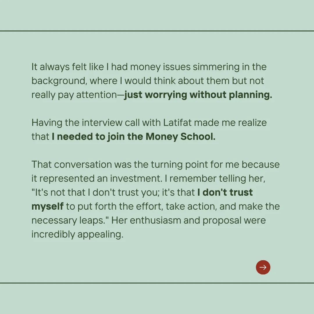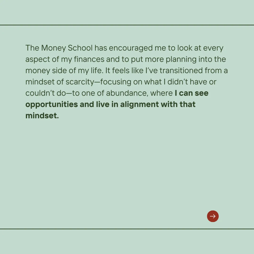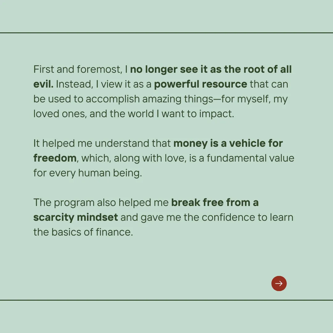 We teach money from a perspective that deepens your relationship with yourself, fostering personal growth alongside financial literacy.