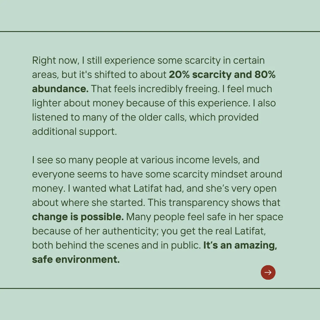 Five days of money training with Dr. Latifat, access to the Know Your Money More Facebook group and workbook, strategies to increase savings, and a VIP pass to ask questions and get coached live by Dr. Latifat.