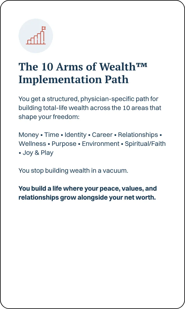 You master the tools affluent physicians use intentionally: leverage without fear, investing with clarity, optimizing taxes, and designing generational wealth on purpose.