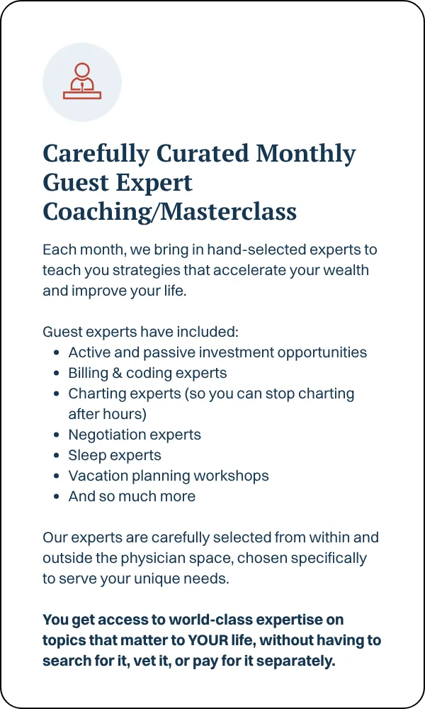 Because this isn’t generic financial advice. This is physician-specific, high-income-specific, woman-specific wealth building. We understand your unique tax challenges, student loans, time constraints, and earning potential. Plus, this isn’t just information – it’s coaching, accountability, and community. You’re not doing this alone.